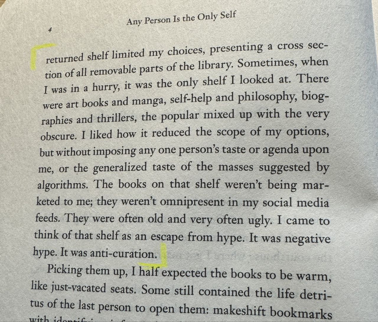 Anti Curation of Books