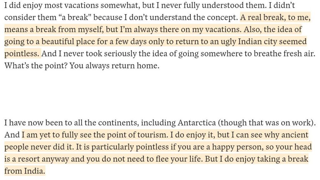 Aptly applies to all of us leaving to beautiful places on vacation in search of ‘finding ourselves’ and becoming ‘wanderers’. Can we really run away from what we are and become something new just by roaming around new places?